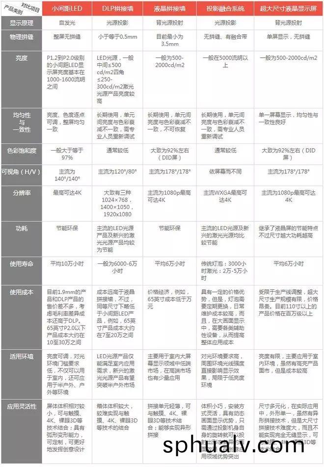 主流大屏幙(mu)顯(xian)示(shi)對(dui)比